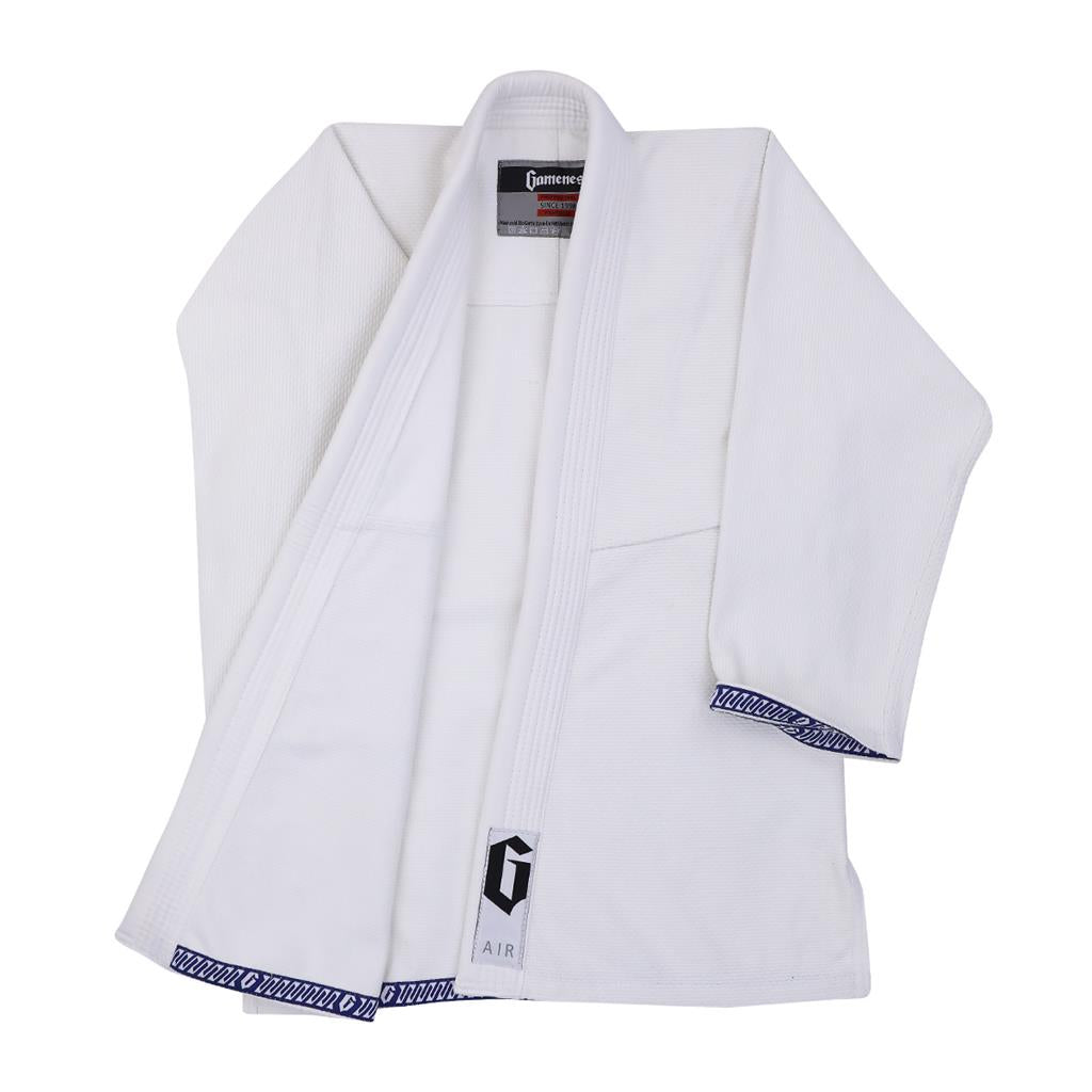 Gameness designers built the best light weight Air gi we have ever offered for competition and training. The jacket is a 100% premium cotton 350 gsm fabric in a durable pearl weave. Light and built to last it uses a new reinforcement piecing methods make the AIR incredibly tough without compromising comfort and fit. The Air 2.0 pant is constructed from a premium 60% cotton rich blend with 40% poly in a rip stop weave making it the toughest light weight pant in the Gameness line. The Air 2.0 clean design provides the most real estate for your gym logo, patches and custom embellishments. Belt not included.