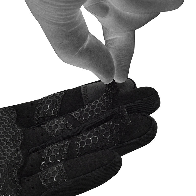 Believe in yourself, train hard and get out of your comfort zone with the RDX gym gloves. Full finger gloves are forged using easily washable, lightweight and breathable pure cotton towel material on the outside, along with nylon stretchable mesh for ultimate heat expulsion. Easy to wear fitness gloves feature a heavy lifting palm constructed with a combination of anti-lip silicone grip with G-Foam padding inside for enhanced palm protection. Touchscreen friendly conductive silicon ink layer on top of microfiber to easily use electronic devices during exercise at home or gym. Quick dry pure cotton towel at thumb for wiping sweat off to keep your hands dry even after long hours of training. Workout gloves come with a top-notch elasticated nylon strap to provide additional support to the wrist and keep it aligned. Hook and loop closure mechanism with pull tabs for quick on and off.