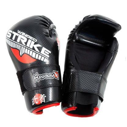 Hayabusa® Winged Strike® Competition Gloves are constructed to fully-protect hands, knuckles and wrists with a secure and comfortable fit. The full-coverage, ergonomic, and high-density padding ensures striking impact absorption and unrestricted movement. The open palm design of the Hayabusa® Winged Strike® Competition Gloves allow hands to stay cool and comfortable at all times.