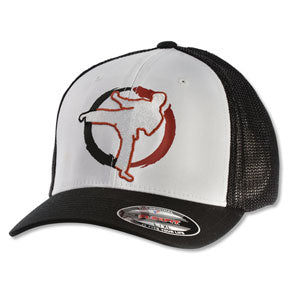 This trucker-style cap features a comfort-fit design that fits most heads. Constructed of 55% polyester, 43% cotton, and 2% spandex.