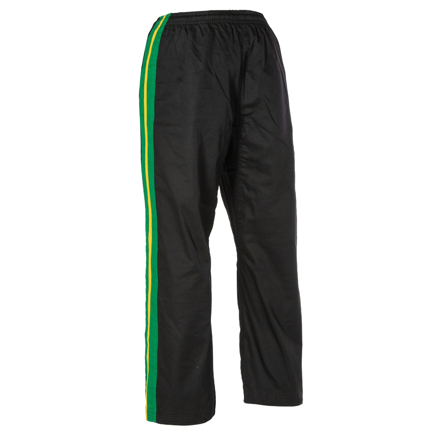ProForce Sport® Demo Karate Pants Black w/Green & Yellow Stripes